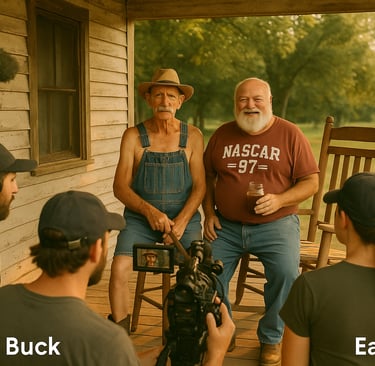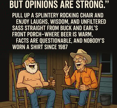 We’re broadcasting straight from the front porch, where the rocking chairs squeak, the jokes are illegal in 14 states, and Earl’s been “fixin’ the same lawnmower” since 2003.